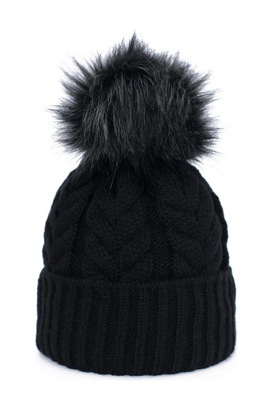 Podwijana czapka z pomponem i warkoczami.