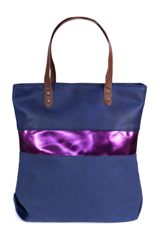 Damska torebka na ramię zdobiona błyszczącym pasem.