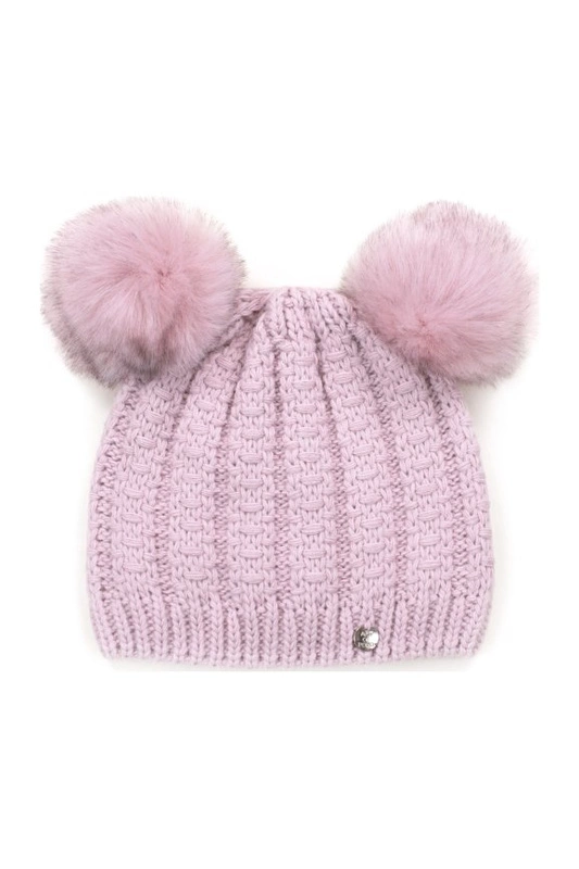 Urocza czapka zimowa z dwoma puchatymi pomponami.