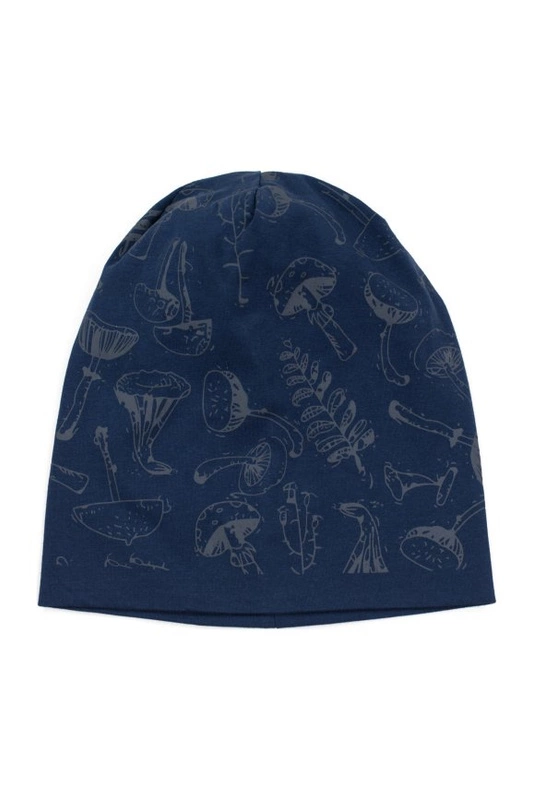 Urocza dziecięca czapka zdobiona leśnym nadrukiem.