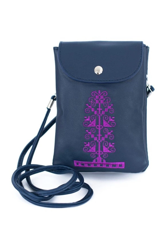 Mała torebka damska typu listonoszka. Zdobiona orientalnym haftem.