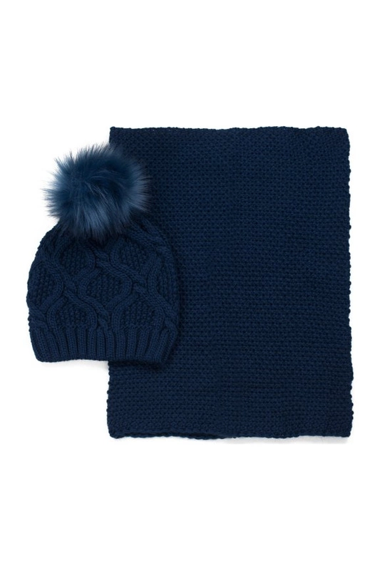 Uroczy komplet składający się z czapki z pomponem i komina.