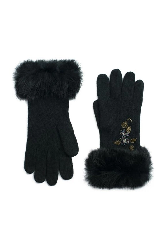 Wełniane rękawiczki damskie ręcznie ozdobione perełkami.