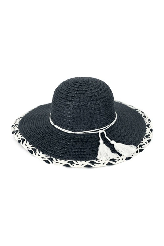 Twarzowy i gustowny, z ozdobnym rondem i fantazyjnymi frędzelkami.