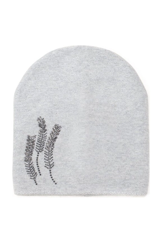 Elegancka czapka ozdobiona błyszczącym motywem kłosów.