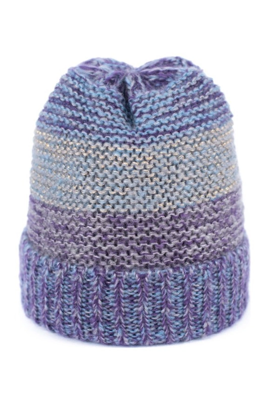Podwijana czapka o melanżowym splocie.