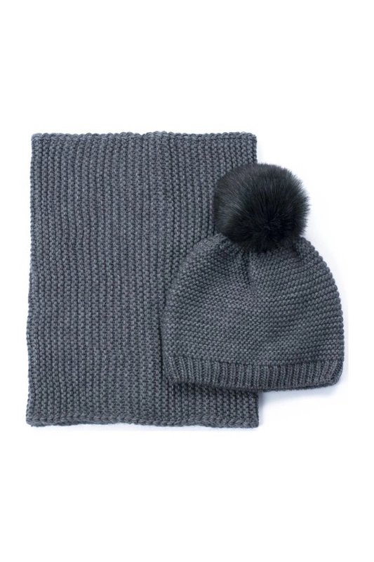 Stylowy komplet zimowy (czapka + komin) w klasycznym fasonie.