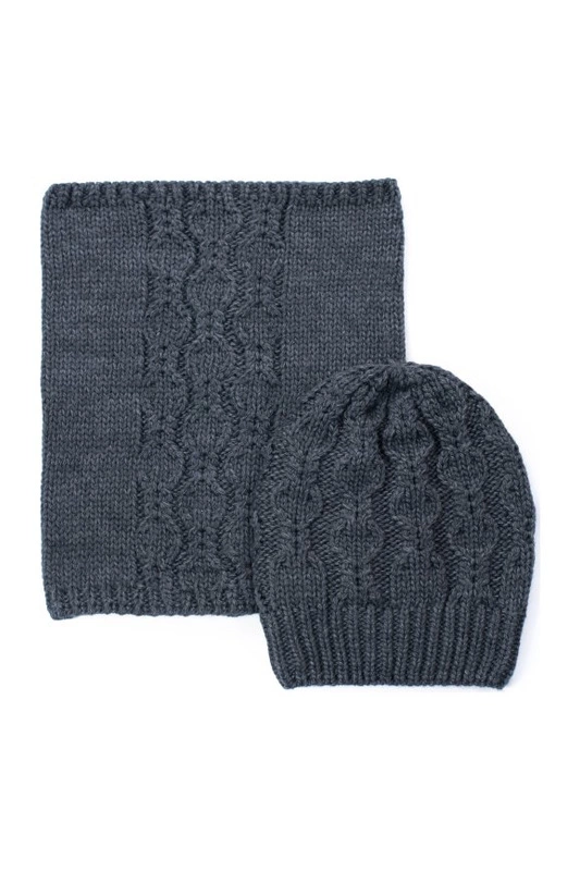 Czapka podszyta od wewnątrz polarem. Ciepły komin typu tuba dobrze otula szyję.
