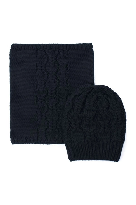 Czapka podszyta od wewnątrz polarem. Ciepły komin typu tuba dobrze otula szyję.
