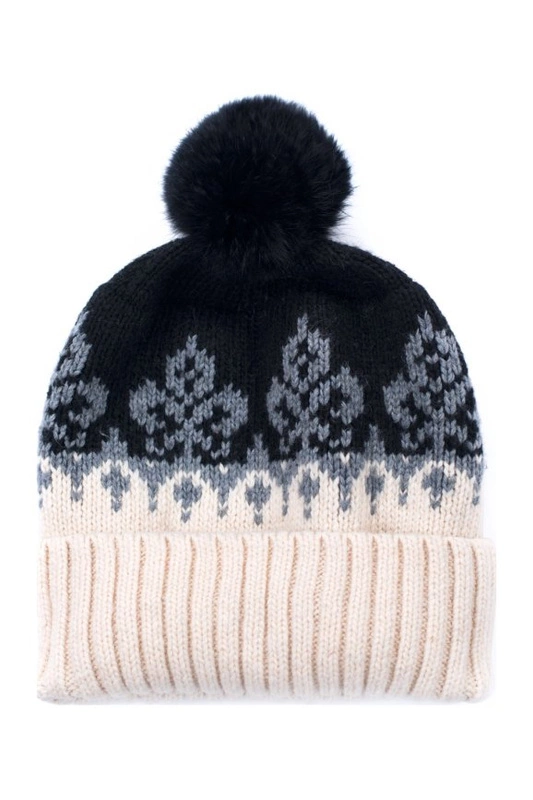 Podwijana czapka z pomponem z naturalnego futra.