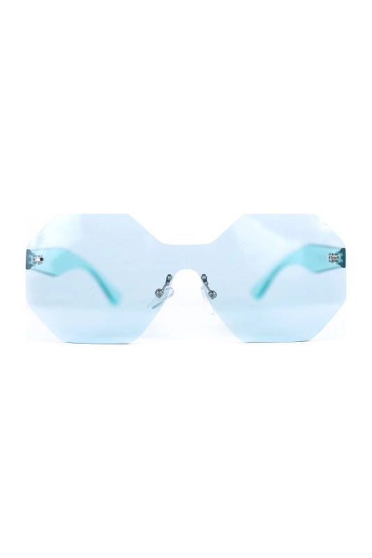 Okulary przeciwsłoneczne z dużymi szkłami o niebanalnym kształcie.