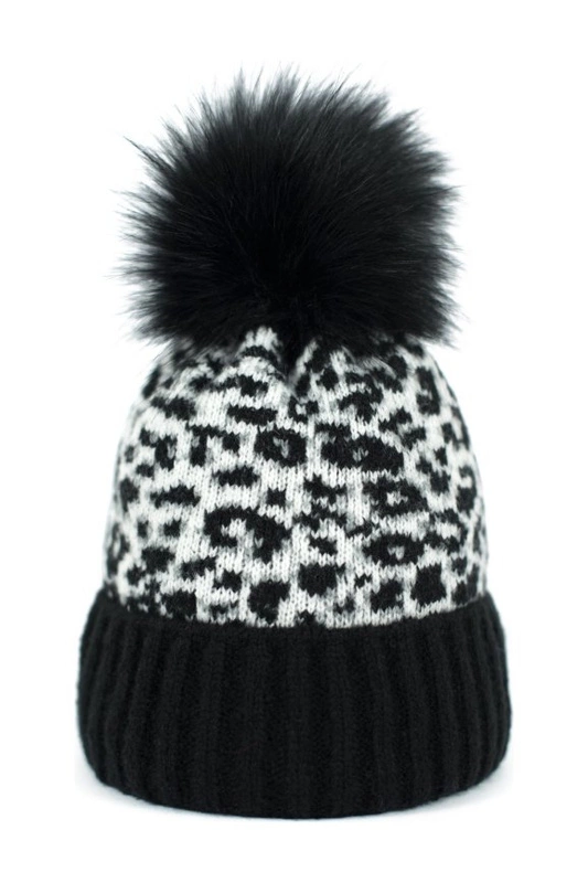 Ciepła czapka zwieńczona pomponem ze sztucznego futerka.