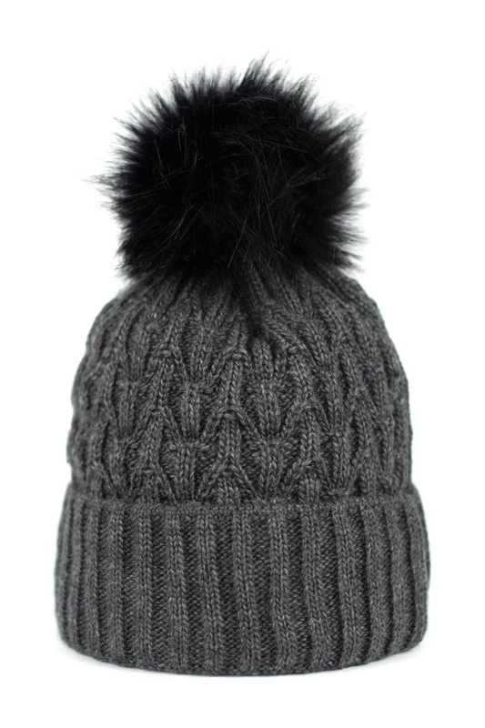 Cieplutka czapka zimowa zdobiona futrzastym pomponem.