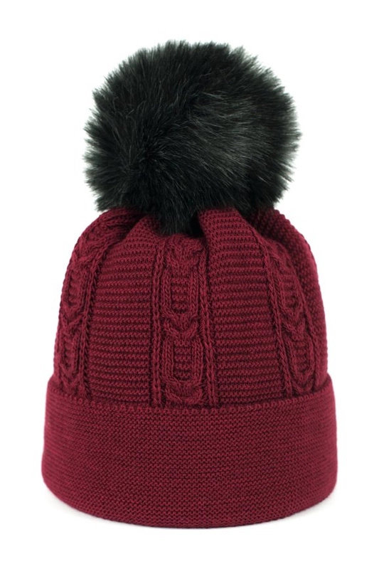 Stylowa czapka z pomponem ze sztucznego futerka.