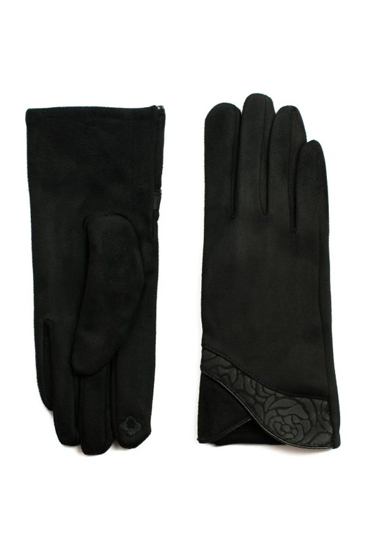 Eleganckie rękawiczki damskie zdobione subtelnym kwiatowym motywem.