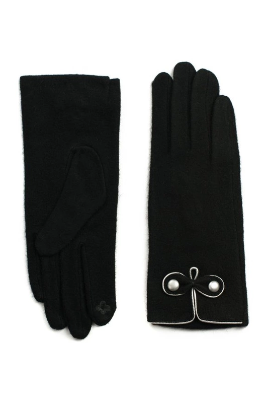 Wełniane rękawiczki ozdobione niewielką aplikacją.