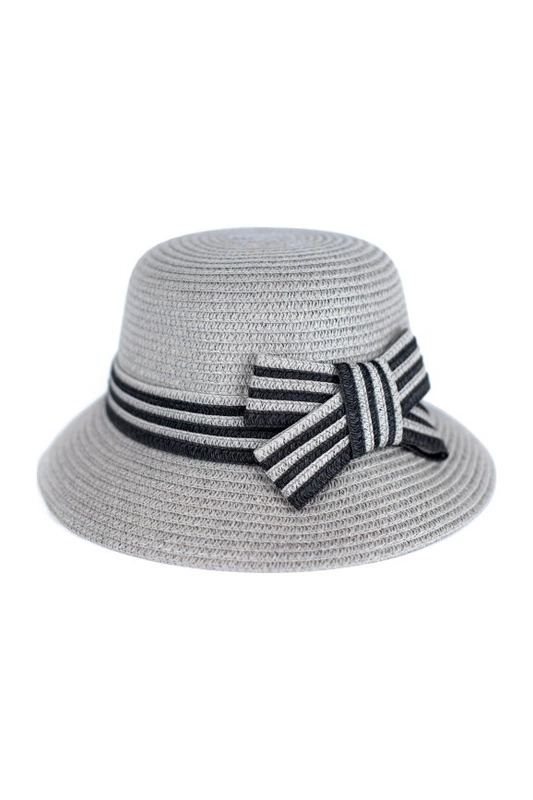 Elegancki kapelusz na lato o krótkim rondzie, z fikuśną kokardką na pasku.