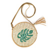 Piękna, okrągła torebka z modnym motywem roślinnym.