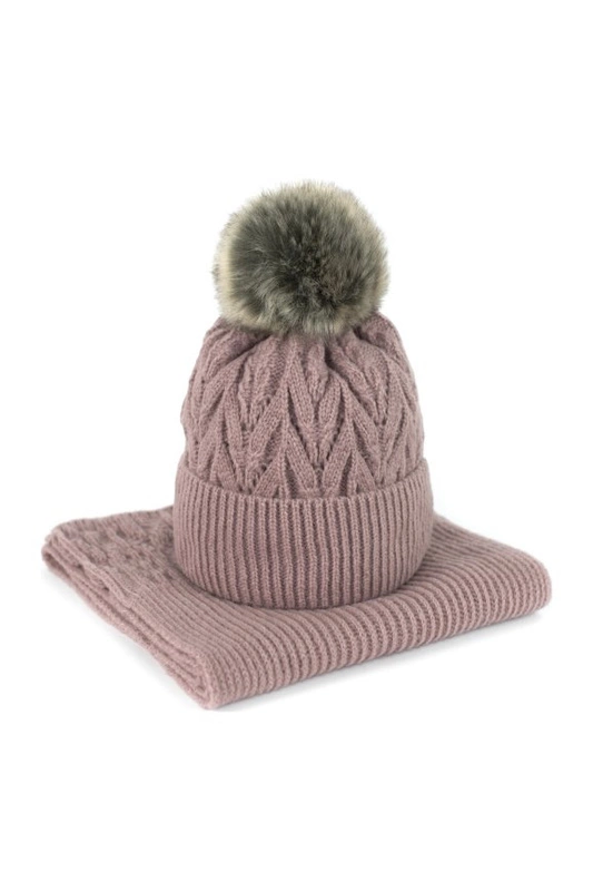 Czapkę zdobi duży pompon ze sztucznego futerka i klasyczny zimowy wzór.