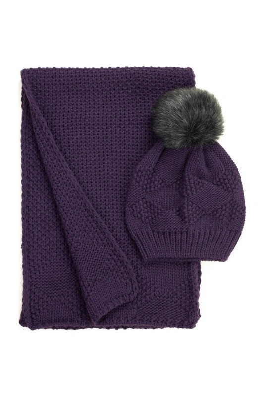 Składa się z czapki z pomponem oraz szalika.