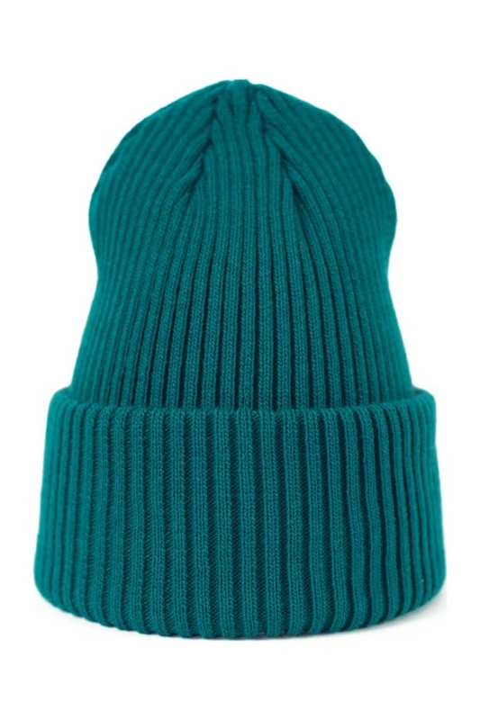 Polska czapka typu beanie, o dłuższym kroju i wywijanym dole. Żywe kolory.