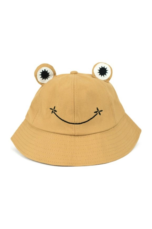 Kapelusz wiosenny i letni typu bucket z wesołym motywem uśmiechniętej żaby.