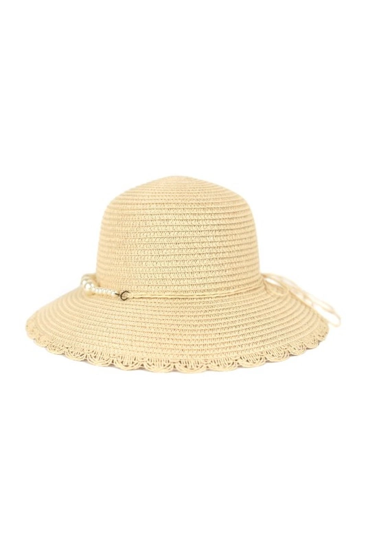 Letni kapelusz ozdobiony delikatnymi perełkami.