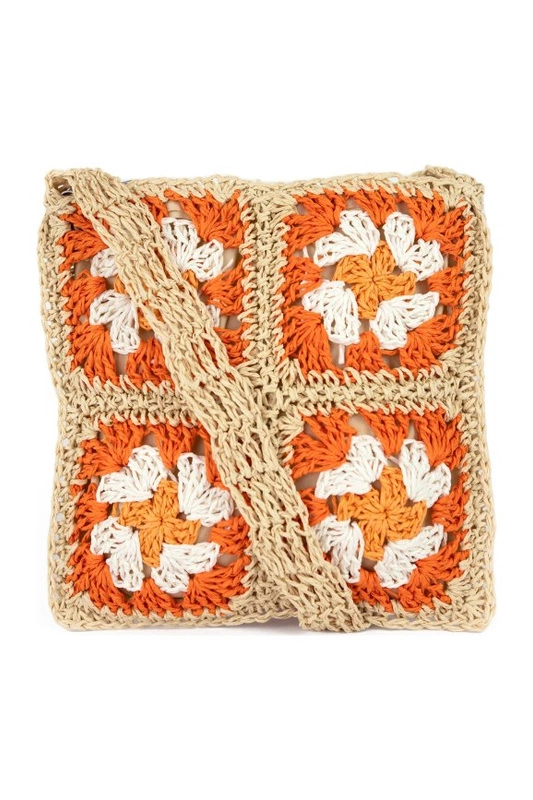 Stylowa, letnia torebka ozdobiona plecionymi wzorami.