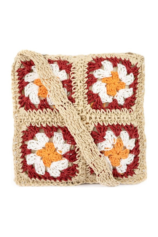 Stylowa, letnia torebka ozdobiona plecionymi wzorami.