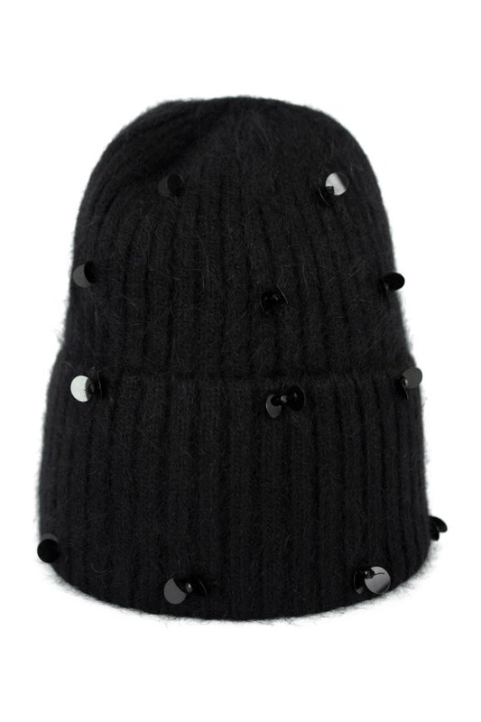 Angorowa czapka beanie z cekinami o subtelnym połysku.