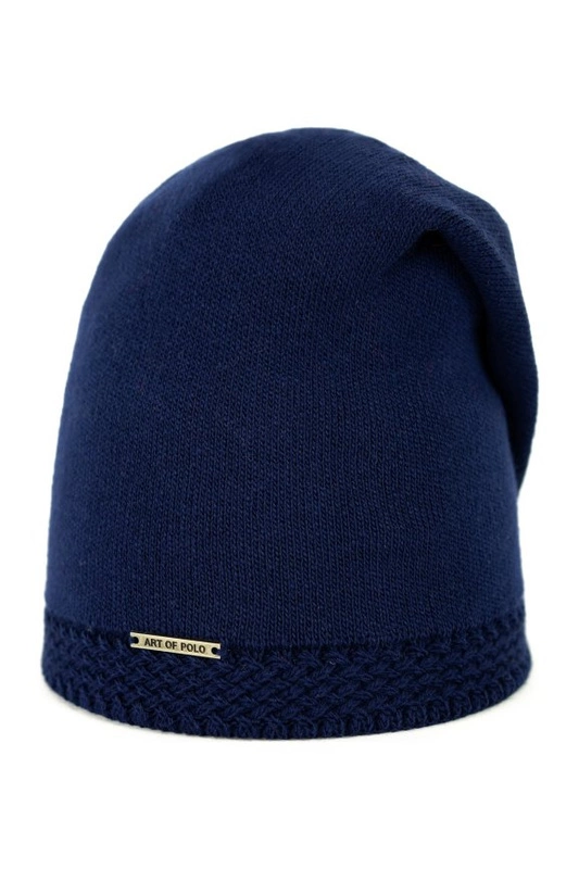 Czapka przejściowa o dłuższym kroju, zakończona ozdobnym ściegiem.