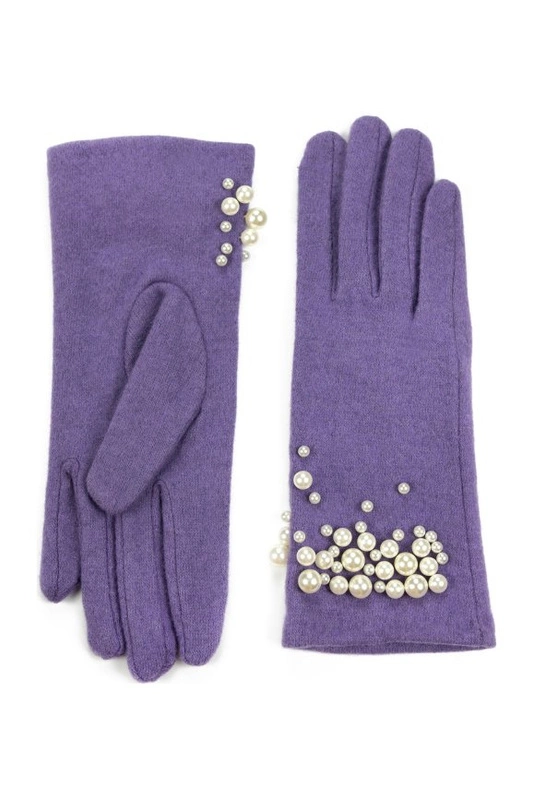 Eleganckie, wełniane rękawiczki wykończone zdobieniem z perełkami.