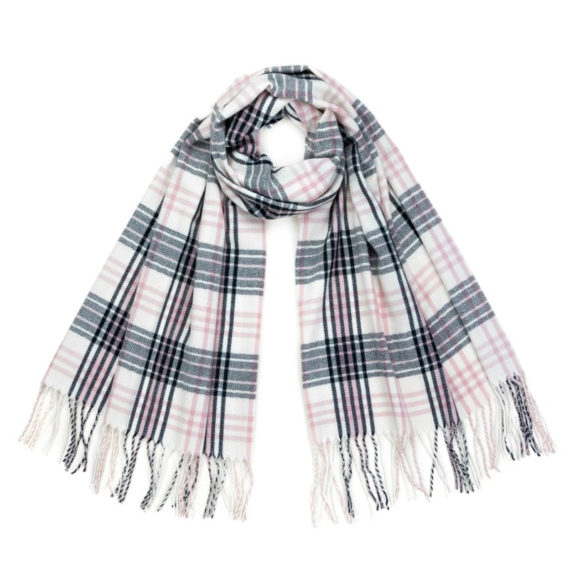 Ciepły, długi szal męski / szal damski w popularną kratę tartan.
