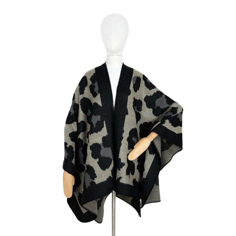 Eleganckie, stylowe ponczo ozdobione motywem zwierzęcym w panterkę.