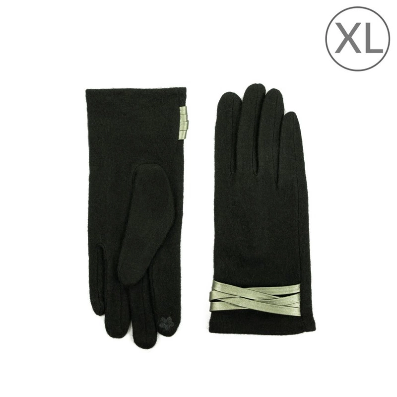 Wełniane, eleganckie rękawiczki z ozdobnym detalem z eko skóry.