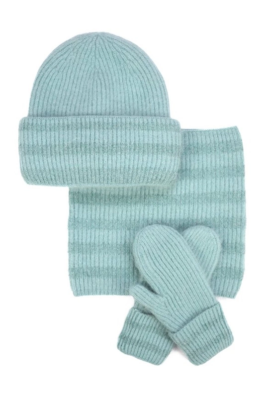 Angorowy zimowy komplet bardzo rozciągliwy, odpowiedni zarówno dla dziecka, jak i osoby dorosłej.