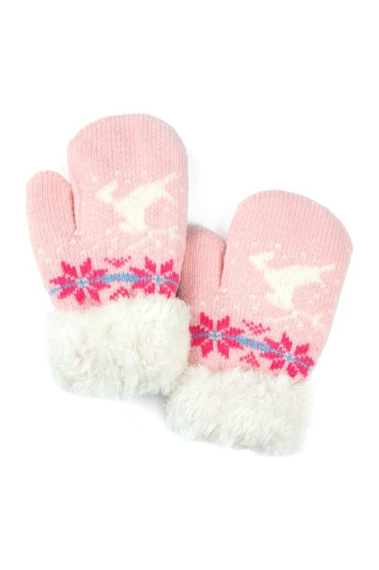 Jednopalczaste rękawiczki dziecięce z motywem świątecznym.