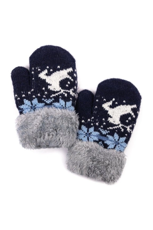 Jednopalczaste rękawiczki dziecięce z motywem świątecznym.
