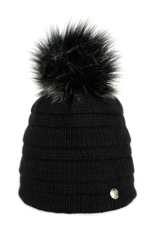 Czapka z ozdobnym futrzanym pomponem.