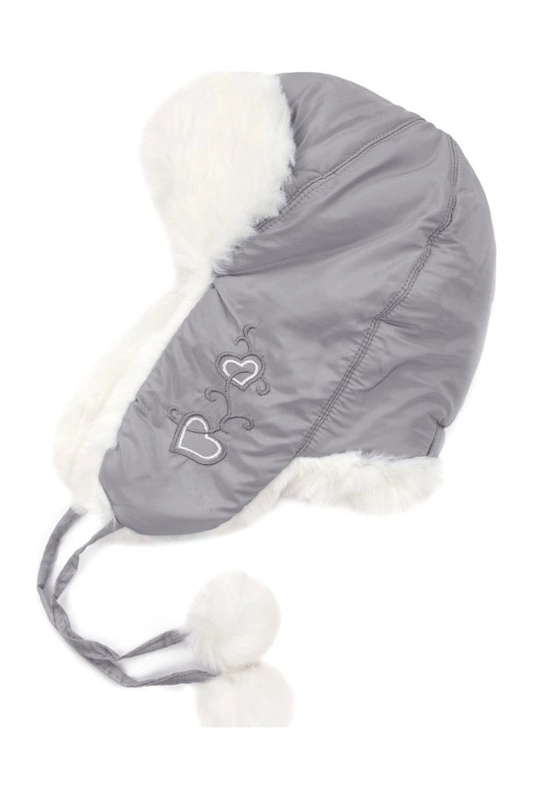 Zimowa czapka dla dziewczynki i dla chłopca ozdobiona haftem w serduszka.