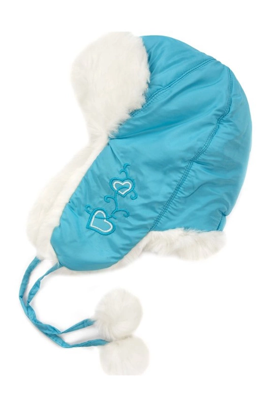 Sznurki z ozdobnymi pomponami można wiązać pod szyją, dla zapewnienia jeszcze większego komfortu cieplnego.