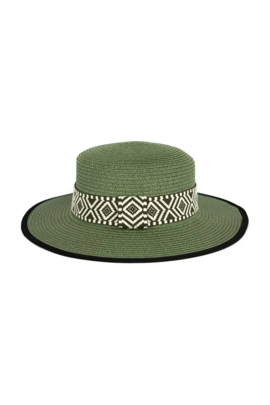 Średniej wielkości, sztywne rondo ochroni Cię przed mocnym słońcem.