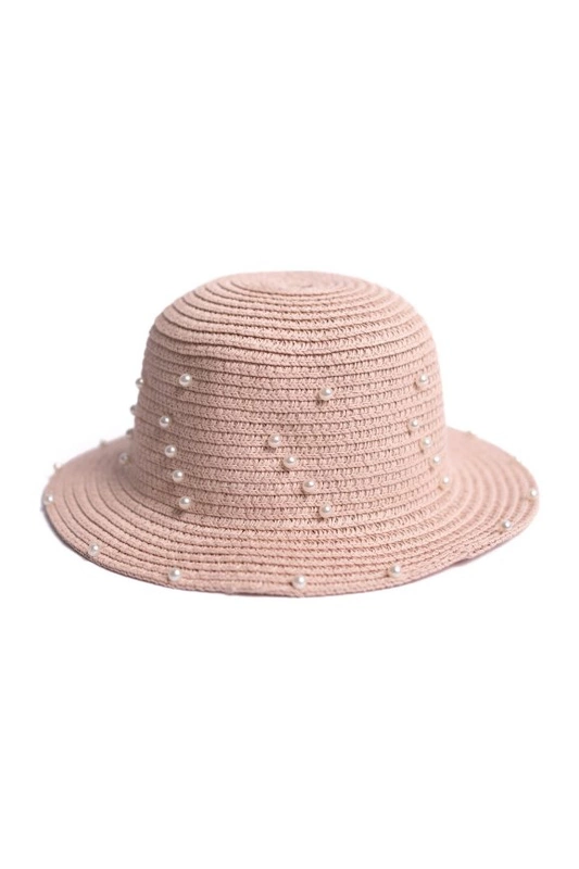 Letni kapelusz dla dziecka dziewczęcy ozdobiony perełkami.
