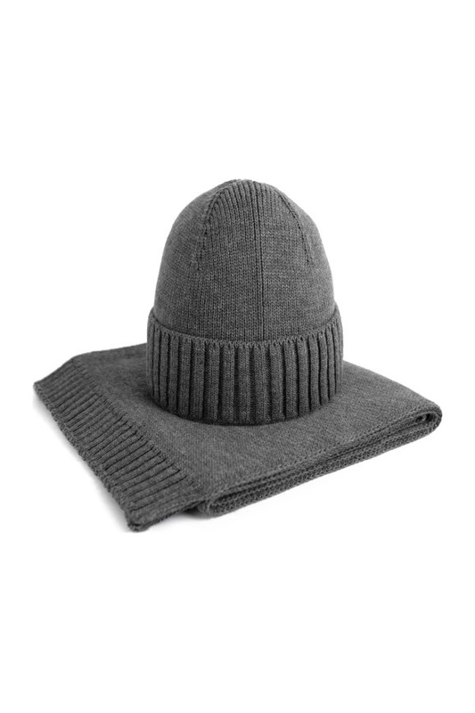Klasyczny komplet zimowy, z dodatkiem wełny i ściągaczowym wykończeniem.