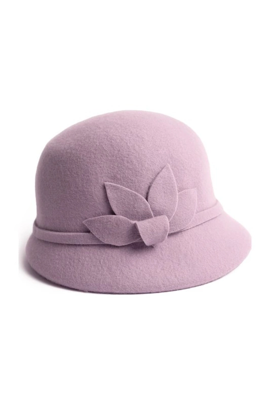 Elegancki, jesienny kapelusz z ozdobną aplikacją.
