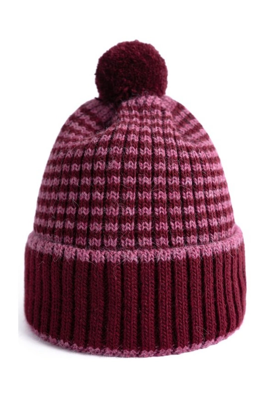 Posiada prosty, wywijany krój, ozdobny pompon i stonowane kolory.