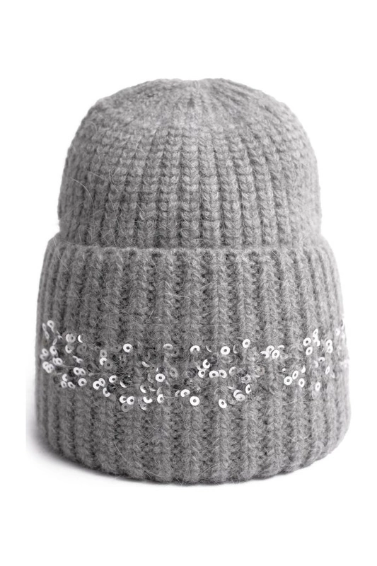 Ozdobna aplikacja z cekinów dodaje subtelnego blasku, nadając czapce elegancki, kobiecy charakter.