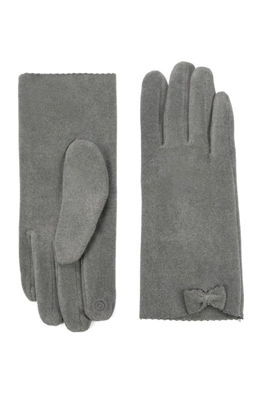 Damskie rękawiczki jednokolorowe z ozdobnym wykończeniem i kokardką.