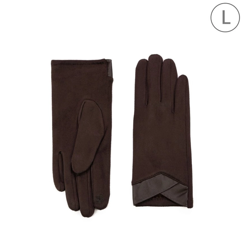 Damskie rękawiczki z łączonych materiałów z ozdobnym, skórzanym wykończeniem.