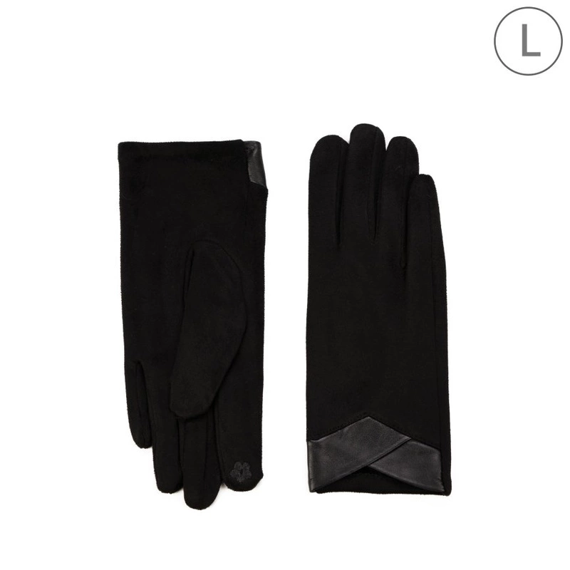 Damskie rękawiczki z łączonych materiałów z ozdobnym, skórzanym wykończeniem.